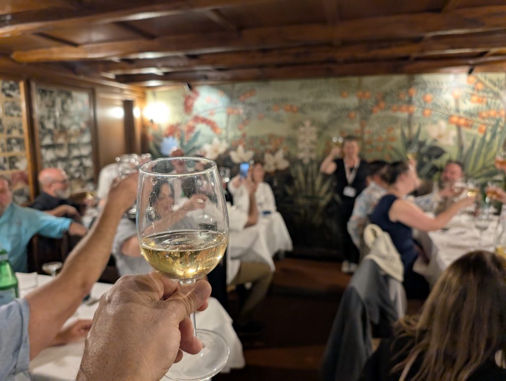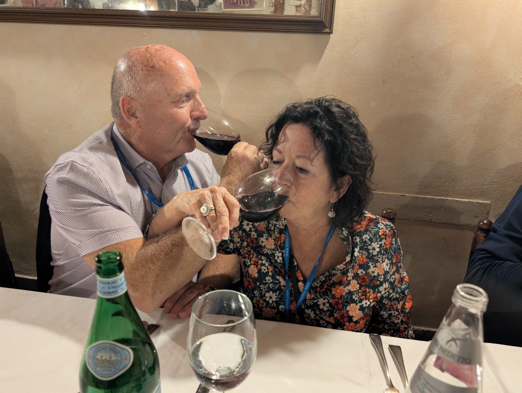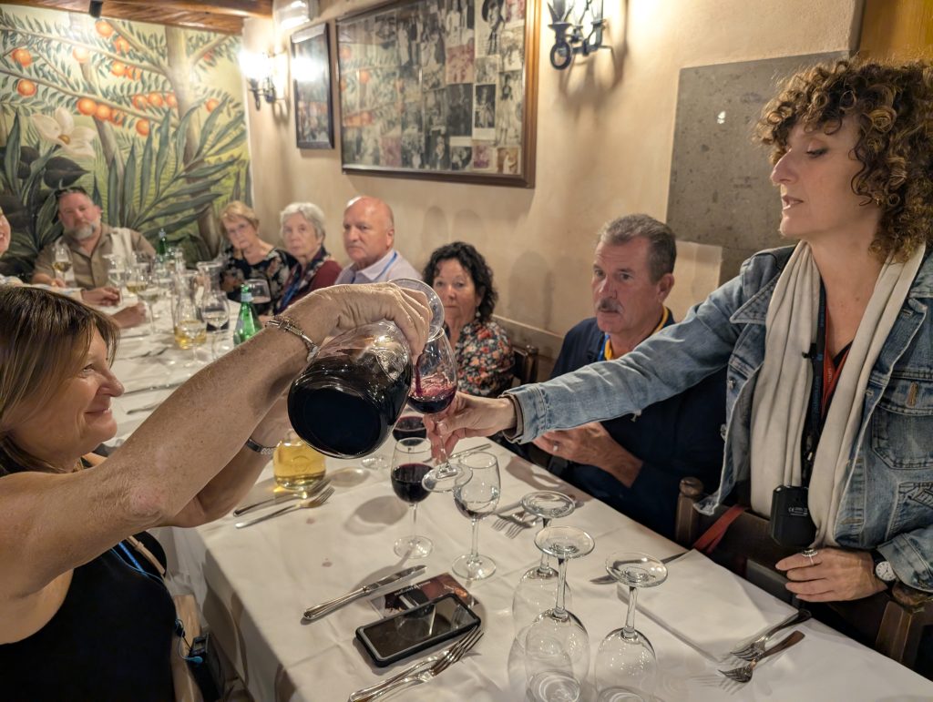 We even had a chance to snap some fun moments: a bright red Vespa parked near a rustic villa, a green Vespa tucked beside a vineyard path, and a warm golden hour toast with our tour group—everyone smiling, glasses raised, hearts full.