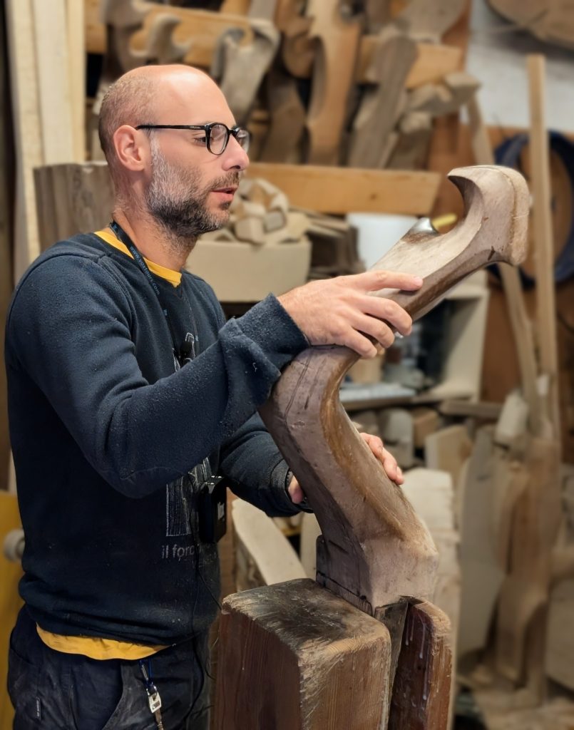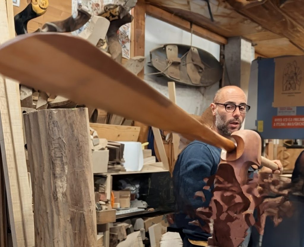 Our morning started at one of the only two active gondola boatyards left in Venice. Walking into this workshop felt like stepping into a different era. Rows of sleek black gondolas leaned against the walls like polished cats, ready to pounce on the canals. We learned about the craftsmanship: every gondola is hand-shaped from multiple types of wood, carefully balanced, and polished to a shine that even your grandmother’s silverware would envy.