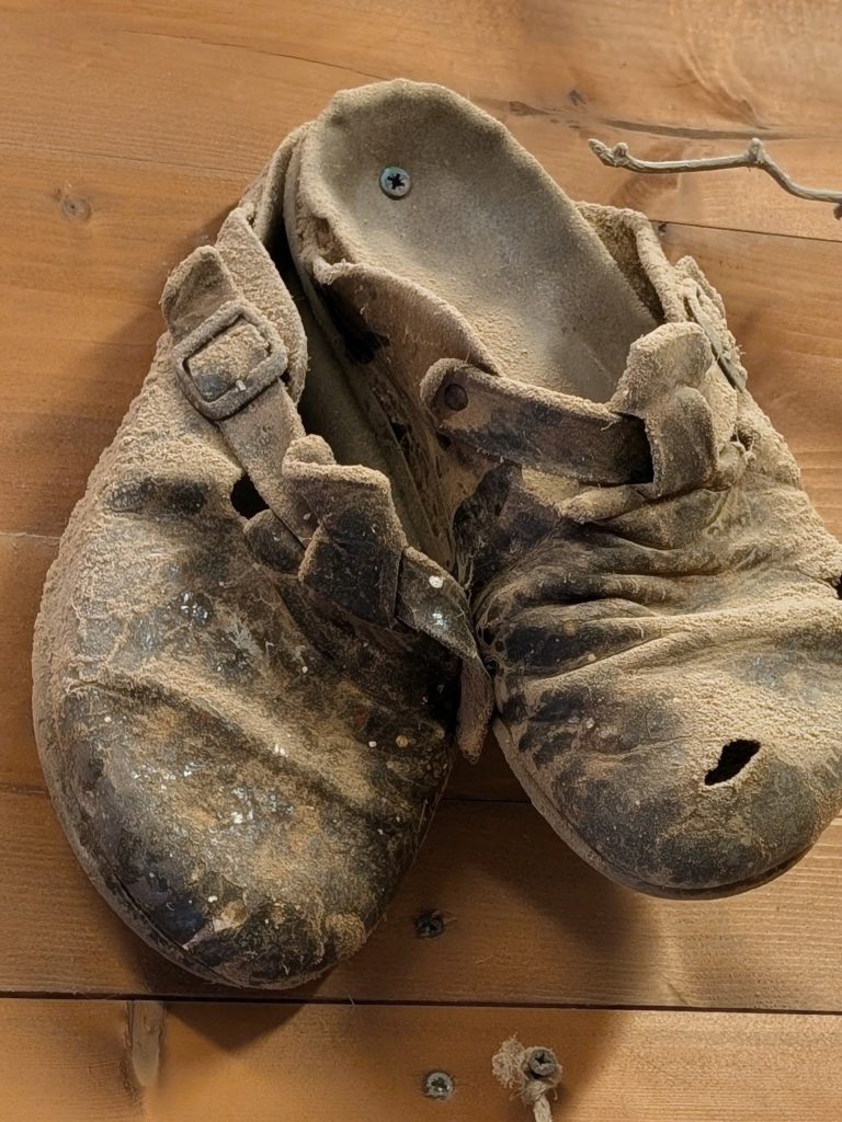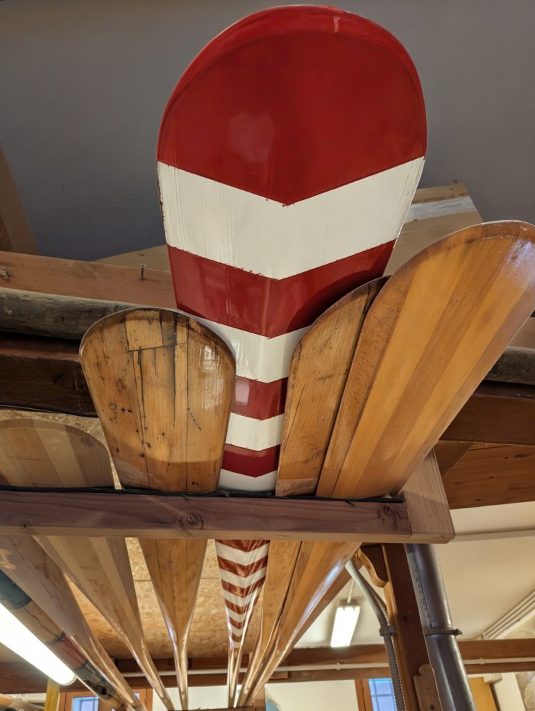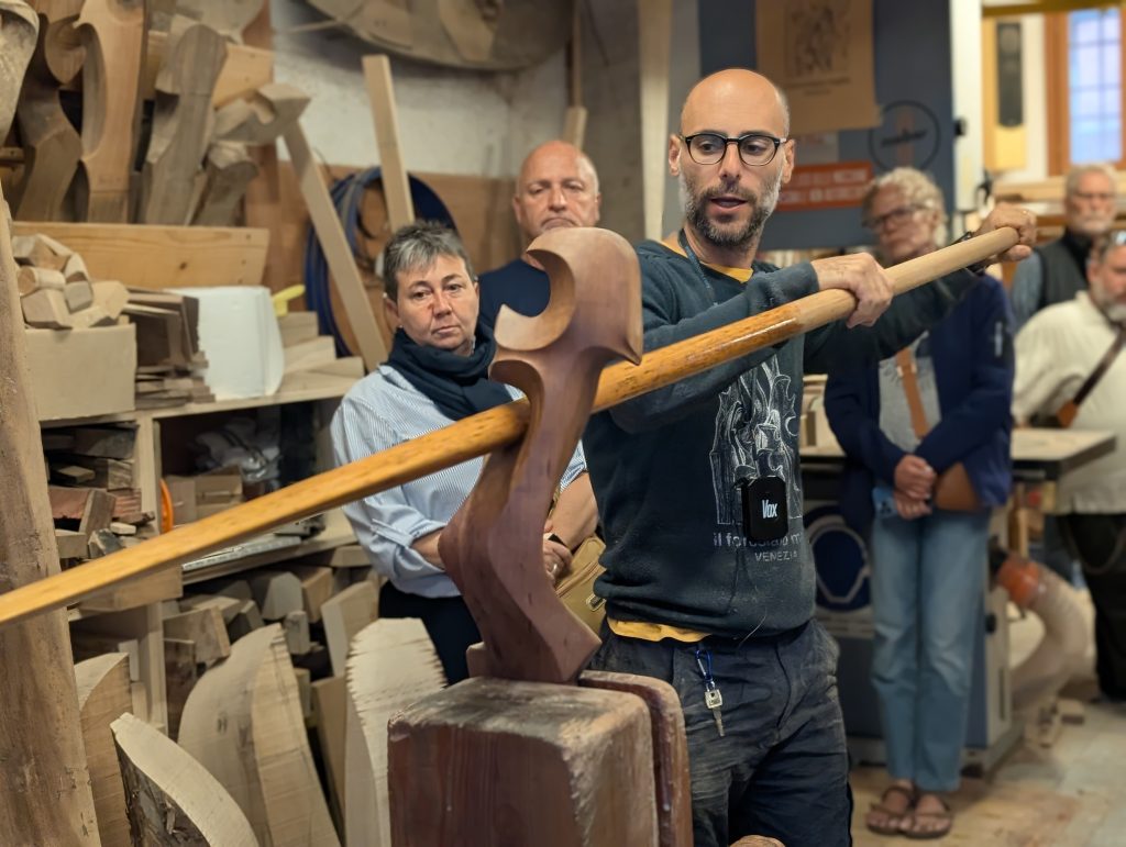 We even got to see a pair of worn-out gondolier shoes—clearly proof that rowing these boats takes dedication (and maybe a bit of masochism). The stack of oars in the corner looked almost ceremonial, like a gallery of wooden wands waiting for their wizard..