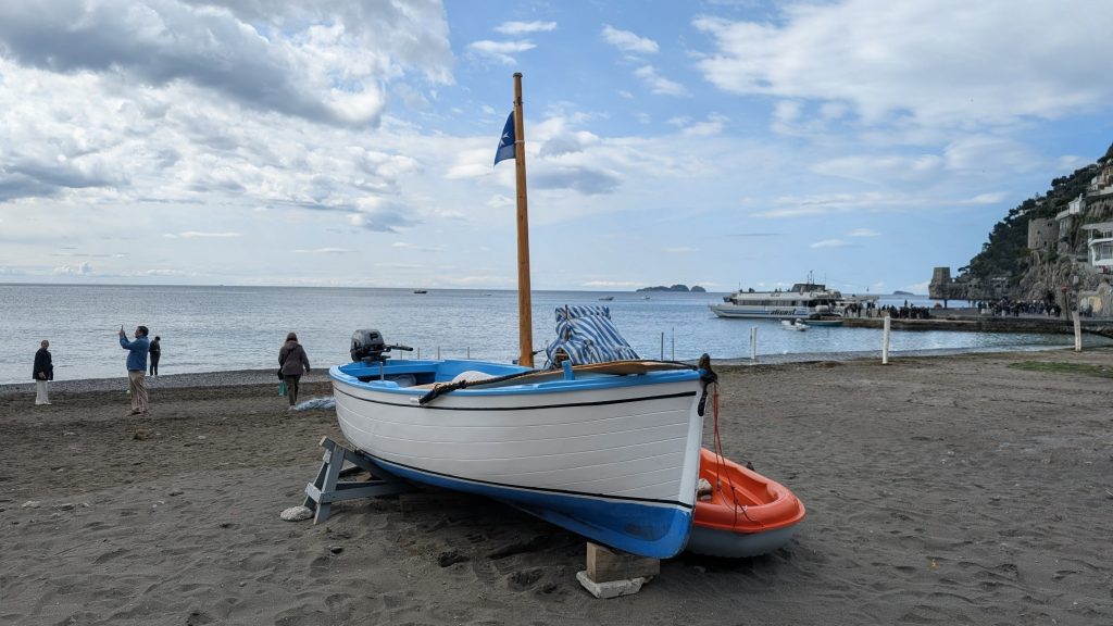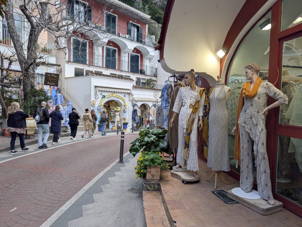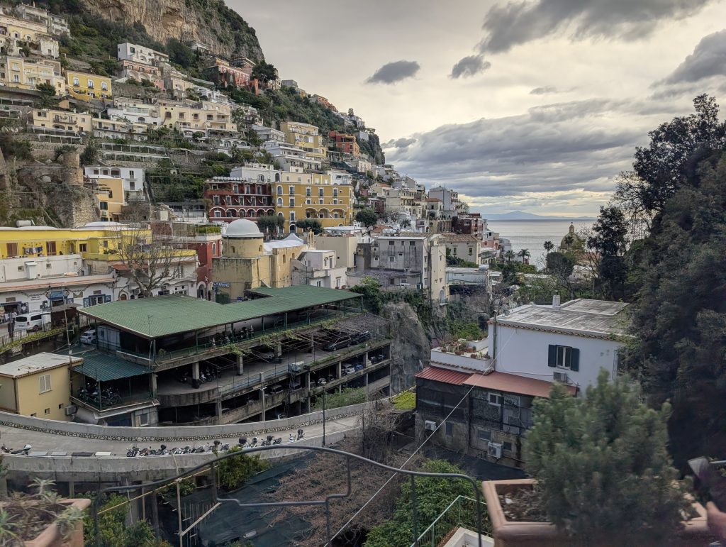 As we continued along the coastline, Positano slowly revealed itself. Colorful homes—painted in soft yellows, pinks, and whites—cascade down toward the water. Even after many visits, that first glimpse still stops you.