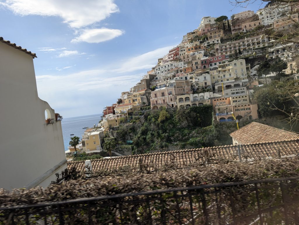 Instead, we loaded into vans and made our way from Sorrento toward Positano. The road winds tightly along cliffs that drop straight into the sea. While the views are breathtaking, the drive demands full attention—so sitting back and taking it all in makes the experience far more enjoyable.