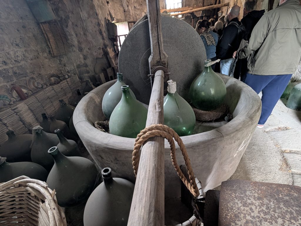 At this farm, everything is still done by hand. Cows are milked daily. Chickens and ducks roam freely. Olive oil is pressed using traditional methods—including a donkey-powered system still in use today.