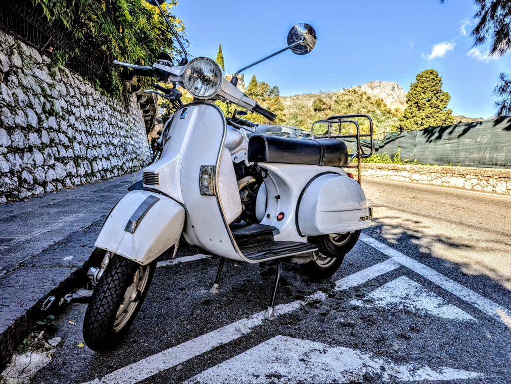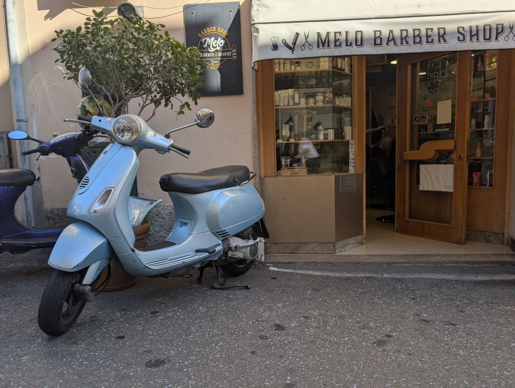 Along the walk, I noticed a wall of colorful ceramic face masks, each hand-painted and full of personality — a perfect example of Sicilian artistry. Not far from there, a driver cruised by on a vintage white Vespa, a snapshot that felt straight out of a postcard.