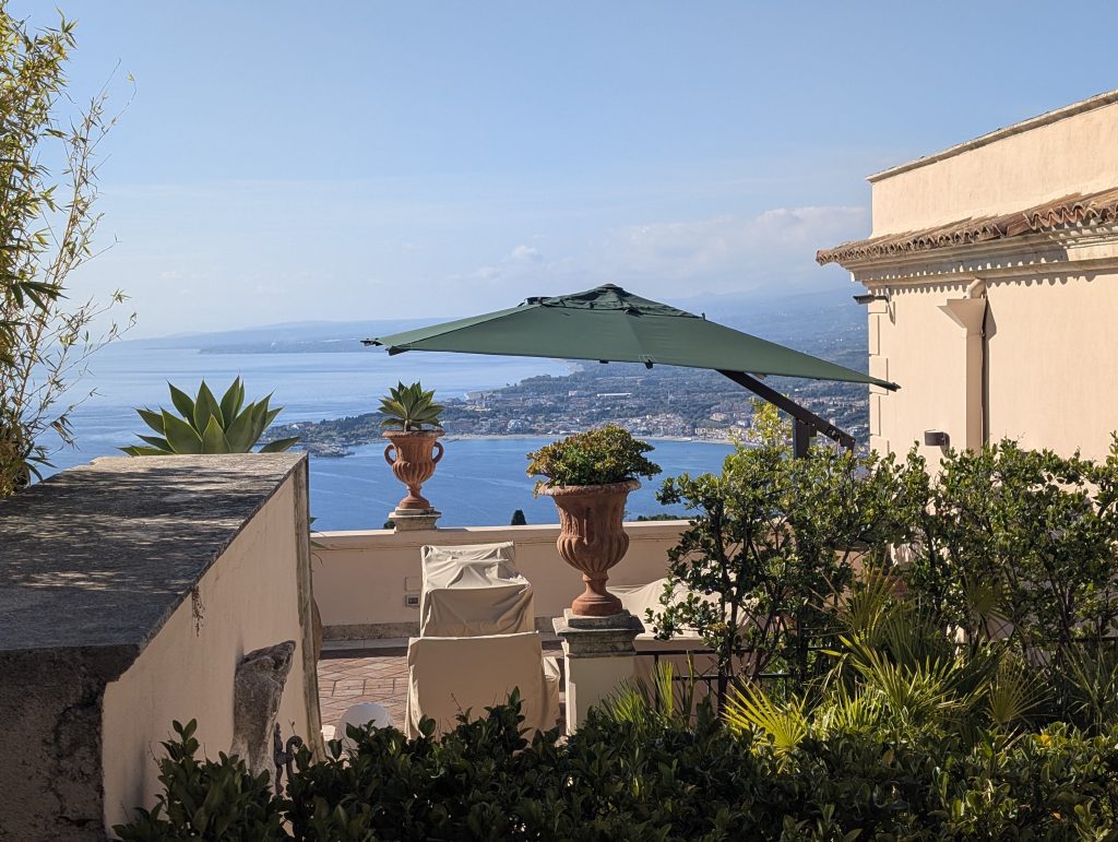 From the moment I stepped onto the hotel balcony, I could see why Taormina has been a favorite for travelers for centuries. The Ionian Sea shimmered below, framed by the cliffs and Mount Etna in the distance. The morning air smelled like citrus and espresso, and the hum of vespas on the street below reminded me — this is authentic Italy.