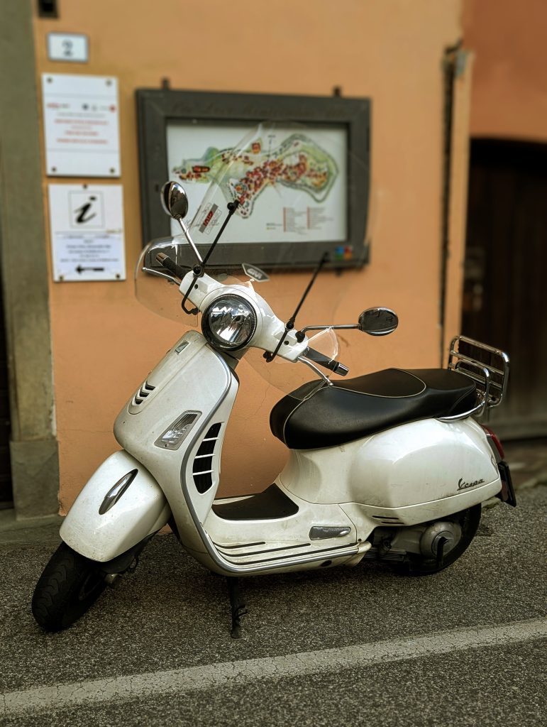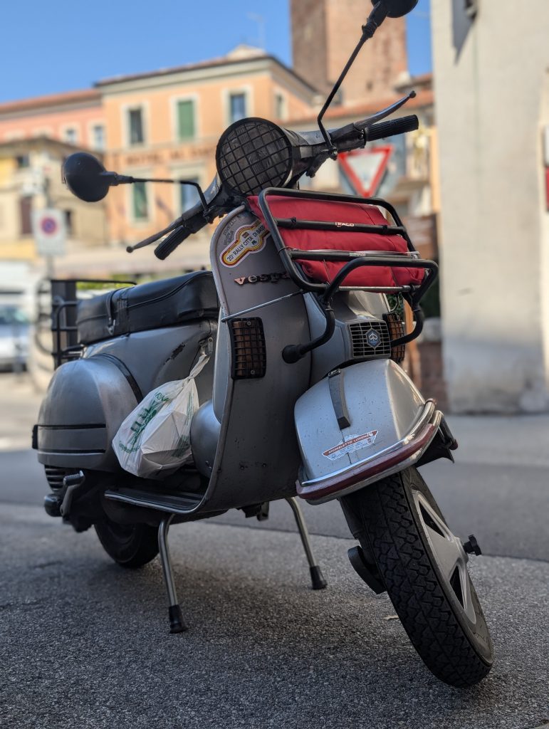 Between bites of tortellini and walks under porticoes, the Vespas kept coming. Sleek white LX models, matte black 300s, and even a custom-painted Modenese yellow Sprint parked outside an espresso bar. Bonus? We found a local Vespa club gathering at Piazza Grande—dozens of scooters lined up like jewels.